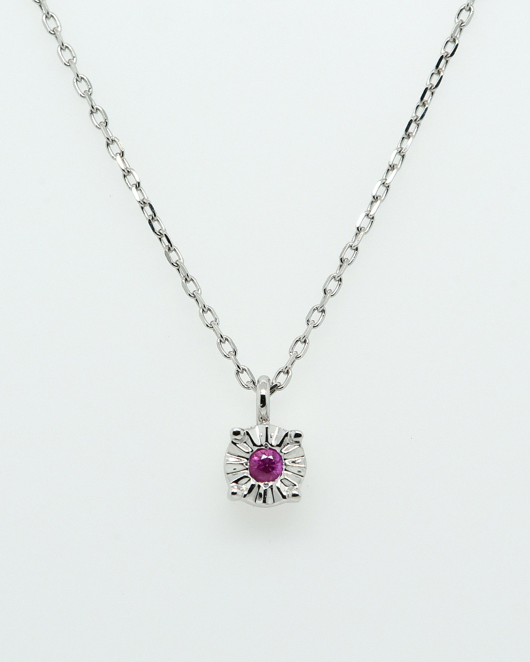 Šis subtilus balto aukso kaklo papuošalas – elegantiška ir minimalistinė detalė, kuri pabrėžia jūsų stilių ir suteikia kasdieniam įvaizdžiui prabangos. Centre žiba 0.05 ct rubinas, suteikiantis subtilios prabangos.