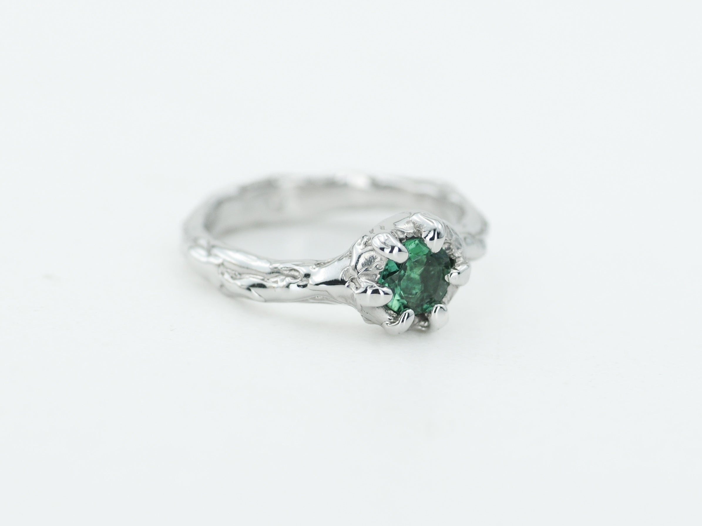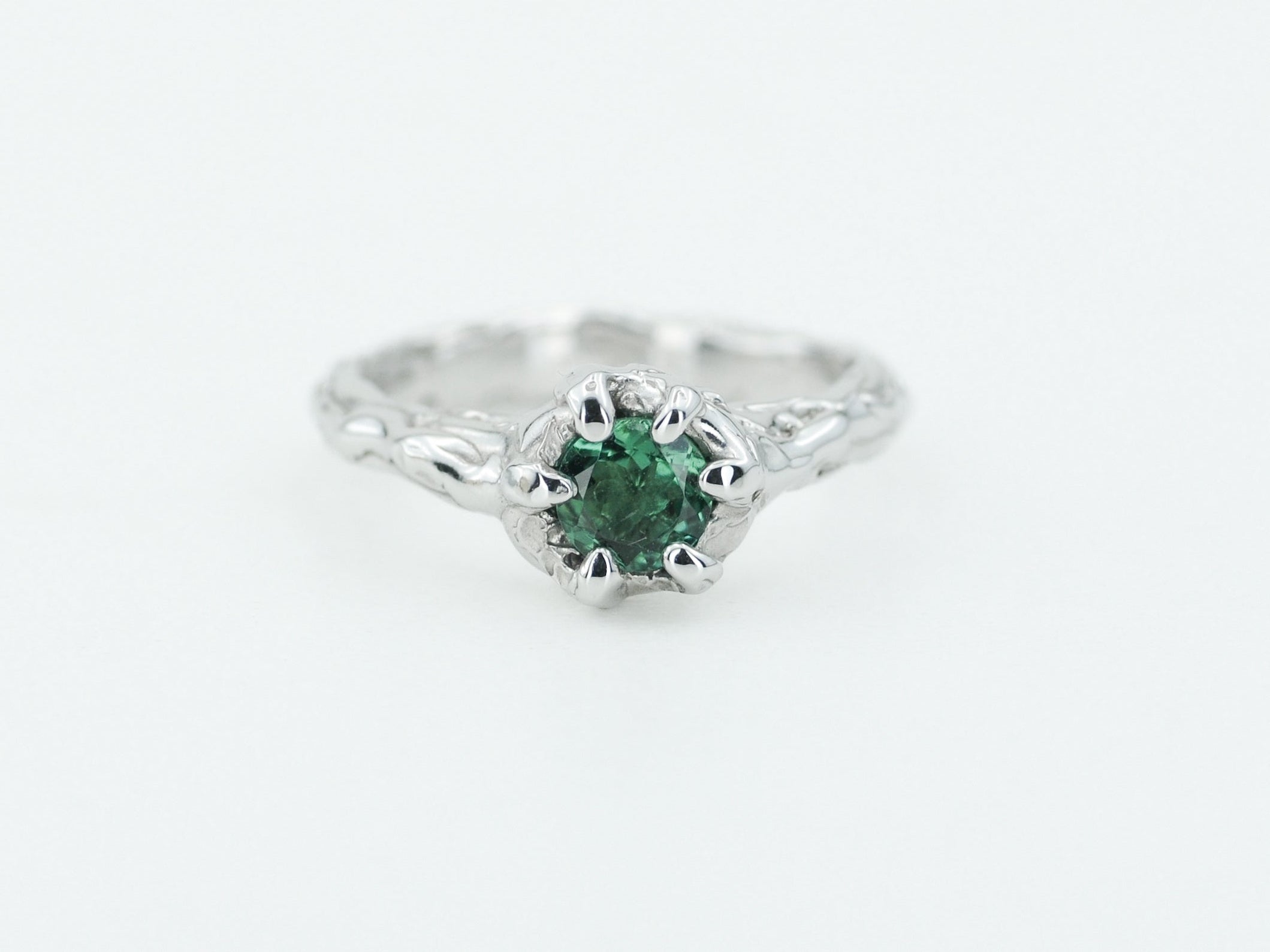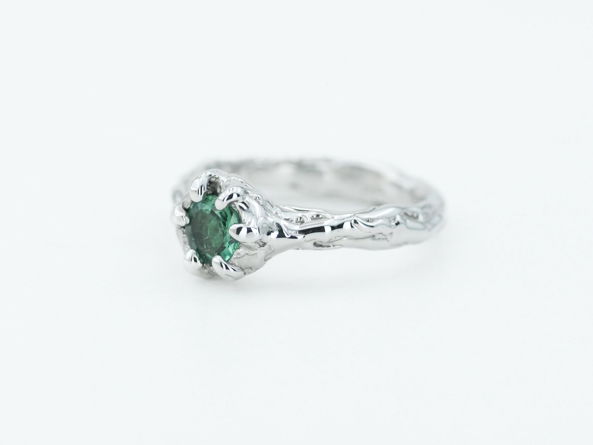 Papuoštas natūraliu turmalino akmeniu, jis spindi šviesoje vis kitaip – priklausomai nuo kampo ir apšvietimo. Kiekvienas žiedas yra vienintelis toks – rankų darbo netobulumas paverčia jį išskirtiniu ir nepakartojamu.